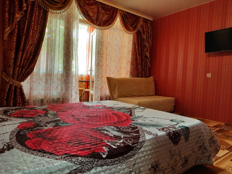 Все комнаты с личными удобствами и сейфами. На 3 этаже "Студия" до 4 человек, в отдельно стоящем здании с отдельным входом "Студия" до 3 человек. Все дополнительные места - полноценная кровать.
