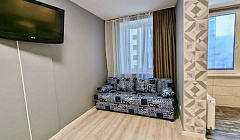 В квартире есть все для комфортного проживания 4-х человек: - двуспальный диван (раскладывается); - 2-х ярусная кровать; - шкаф для хранения вещей; - WI-FI, TV.